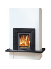 Фронтальный (пристенный) металлический камин. Дрова: 45 см.
