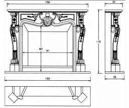Цена указана за камин в стандартном исполнении (см. чертеж) из указанных материалов без топки. Зеркало в комплекте.